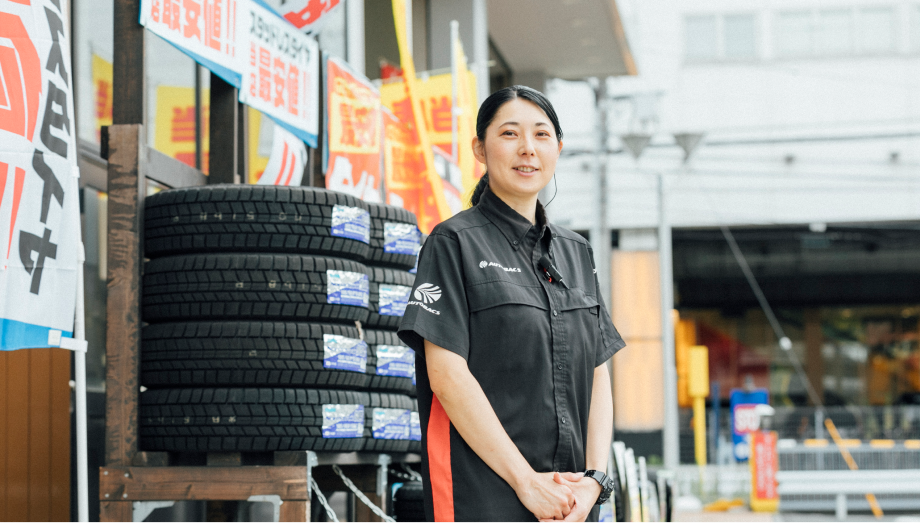 タイヤを中心に、お客様に最適な提案をする販売スタッフです。