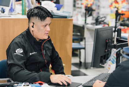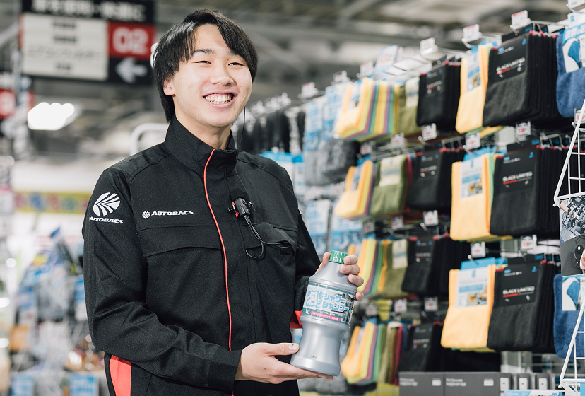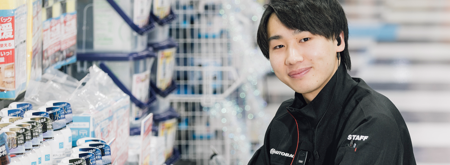 ご来店されたお客様にレジでの会計や商品のご案内を行います。お客様の「困った」を解決するのもこの業務の醍醐味。たとえば「雨の日に視界が悪い」と相談を受けた際は、ワイパーや撥水剤などを提案するなど、会話を通じて信頼関係を築いていきます。
