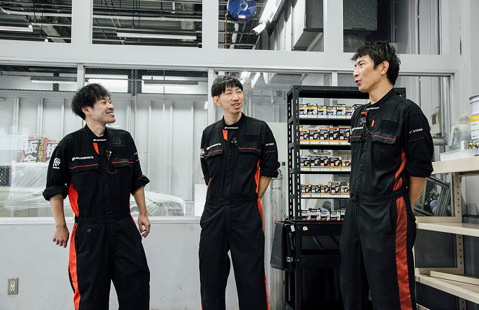 店舗では、フロアスタッフとピットスタッフが連携しながら日々の業務を進めます。声をかけ合い、助け合う風土が根づいているため、チームワークの良さは抜群です。分からないことも、上司や先輩にすぐに相談しやすい職場なので、新人のうちから安心して働けます。