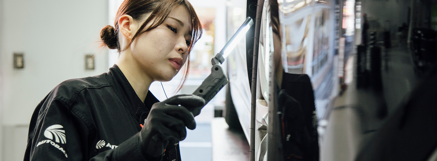 店頭やオートバックス公式通販でご購入いただいたタイヤ・オイル・バッテリー・カーナビ・ドライブレコーダーなどを、その場でスピーディーに取り付け。車種や用途に合わせて最適な取付位置や方法を判断し、確実な仕上がりを追求。安全面を最優先に、細部まで確認を行いながら作業を進めます。